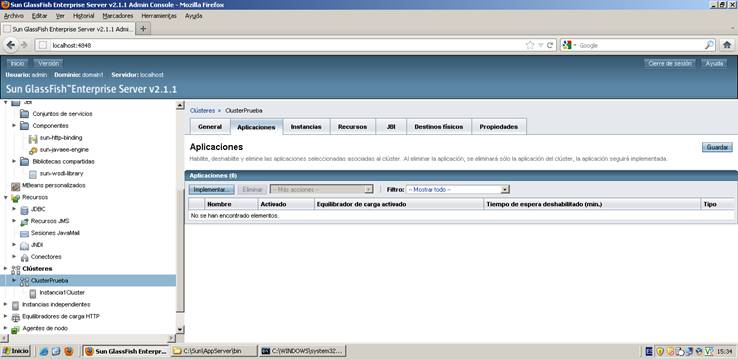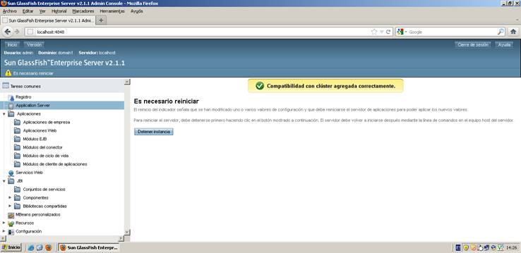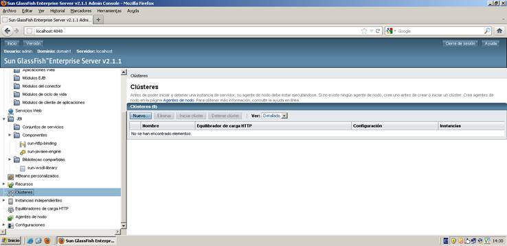 Cuando reiniciemos el servidor Glassfish, en el árbol de opciones ya aparecerá la opción de Clústeres