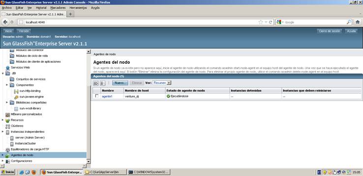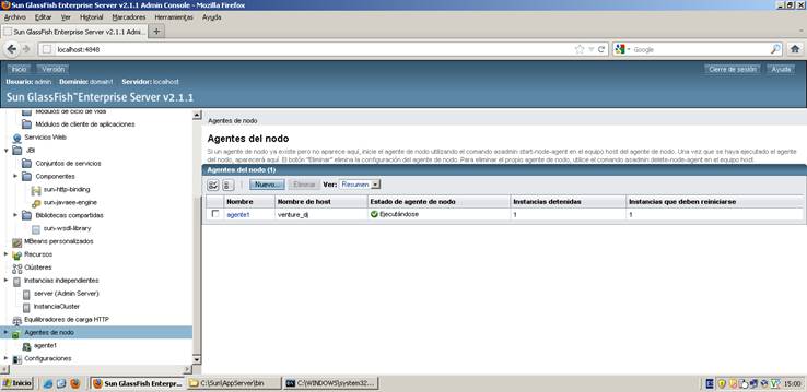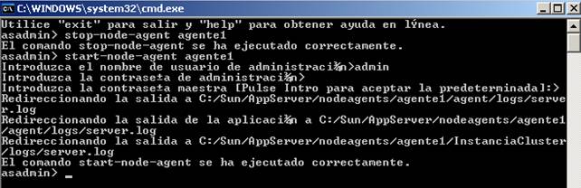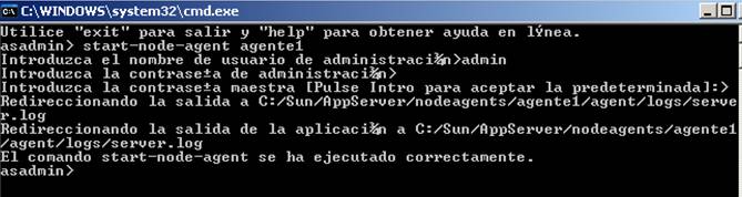 start-node-agent<<nombre del nodo>>, y luego nos solicitará que ingresemos el usuario y la clave del servidor Glassfish